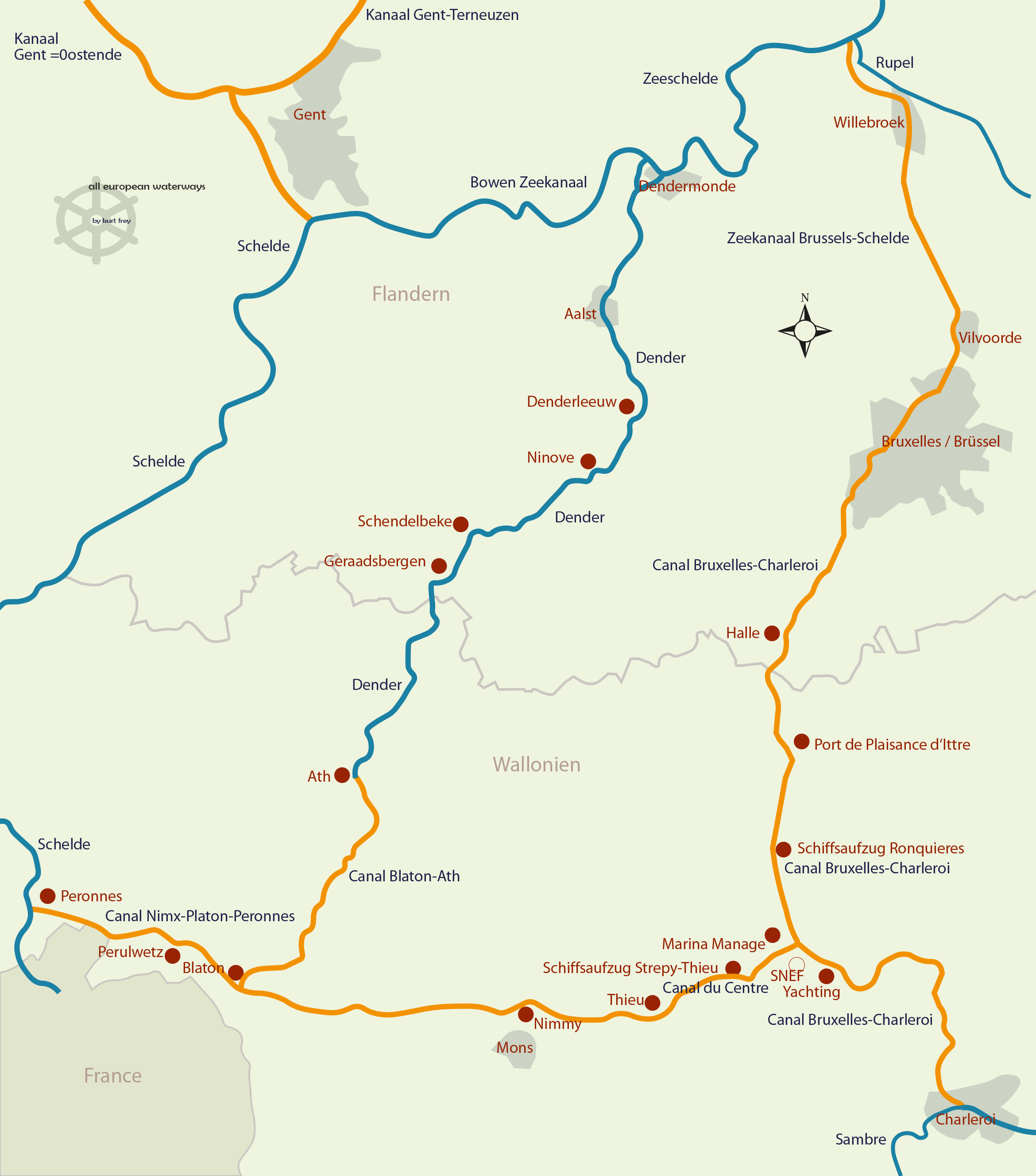 Belgien: Canal Charleroi-Bruxelles & Canal Brussels-Schelde Map